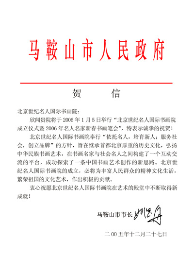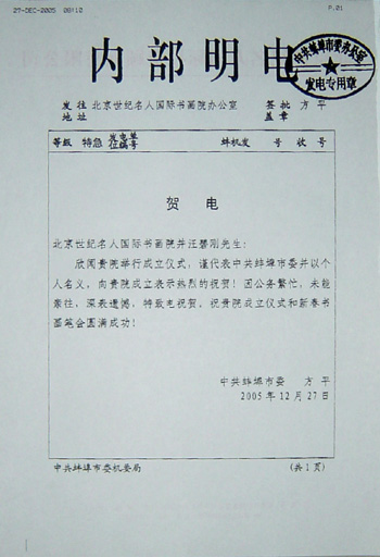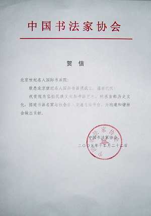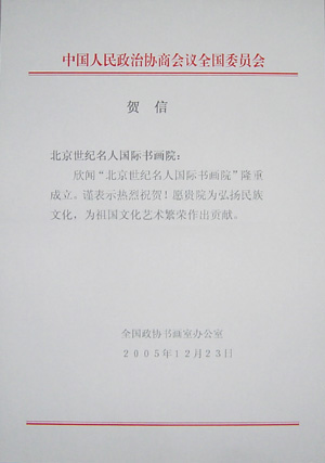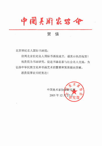 2005年12月,中国书法家协会、中国美术家协会研究部、全国政协书画室办公室致信祝贺本院成立。