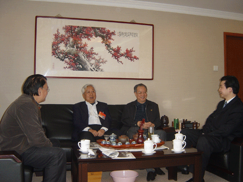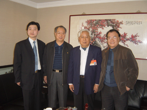 全国政协副主席、名誉院长张思卿(右二)亲切接见本院院长张道诚(左二)、副院长张松(右一)、秘书长汪碧刚(左一)。