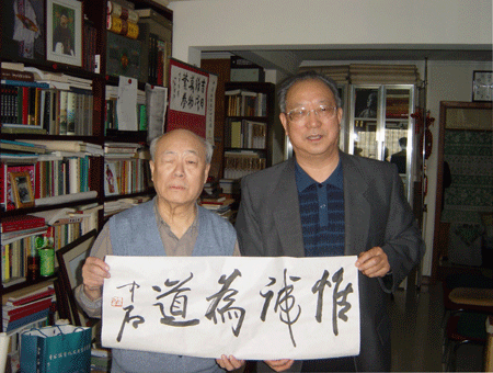 2008年3月16日下午,本院院长长道诚、秘书长汪碧刚前往首都师范大学看望本院艺术顾问、中国书法文化研究院名誉院长欧阳中石先生,并简要通报了本院成立两年多来的工作。欧阳中石先生对本院的各项工作表示满意,并对本院将于今年6月举办的以“迎奥运,颂和谐”为主题的第三届“中国名人名家书画精品展”寄于厚望。欧阳中石先生将自己的书法作品“惟诚为道”赠予张道诚院长。