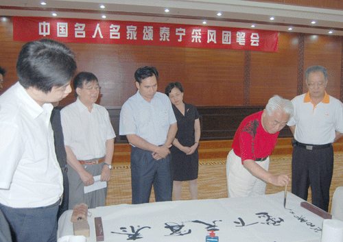 采风团一行在泰宁县委书记曾祥辉、县长廖小华,县委常委、常务副县长郑剑波,县委常委、宣传部长江求荣,副县长蔡秀琴等陪同下瞻仰了泰宁红军街,参观了地质博物苑、泰宁古城,游览了寨下大峡谷、金湖、九龙潭等景区,观看了梅林戏。名人名家 被泰宁美仑美奂的山水景观和悠久厚实的历史文承深深吸引,以对泰宁的真实感受,即兴为山水名城泰宁创作了45幅书画作品。