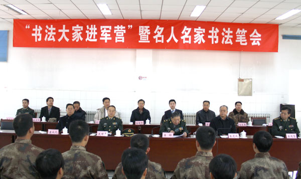 “书法大家进军营”暨名人名家书法笔会活动现场。
