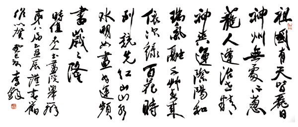 8月14日,著名书法大家、解放军书法创作院院长、中国艺术研究院博士生导师、中国书协顾问、北京世纪名人国际书画院艺术顾问李铎创作六尺巨作祝贺本院举办的第八届中国名人名家书画精品展。