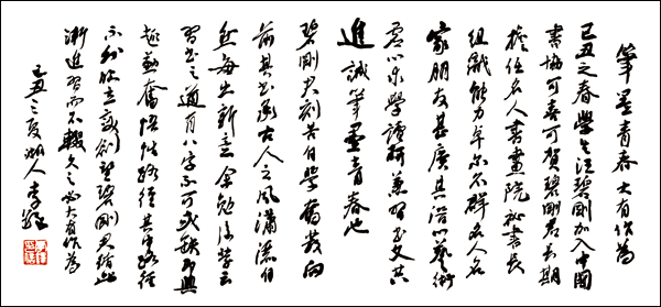 作为学生,我认真阅读了大量关于李铎先生艺术的研究文章,深受启发,同时更加深切地认识到研究李铎先生的艺术及其成就,首先要改变社会对他的肤浅认识。他不仅是书法名家、书法大家,不仅在当代书坛占有一席之地,李老在当代中国社会的政治、文化、艺术诸方面有巨大深远的影响。他在诗文、书画、文化审美多方面的造诣足可千秋,全面衡量起来,李铎的艺术形象可以当之无愧地写入当代艺术史。