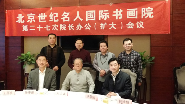 2015年1月17日下午,北京世纪名人国际书画院在京召开第二十七次院长办公(扩大)会议,全国政协原副秘书长、名人书画院院长张道诚,中国书协理事、名人书画院副院长朱守道,全国青联委员、中国书协青少年委员会委员、名人书画院副院长兼秘书长汪碧刚,名人书画院副秘书长李小成、王巨亭、钱建恒,名人书画院中国画创作委员会秘书长陈培伦、委员薛居波,名人书画院办公室主任刘欧祥等参加会议。