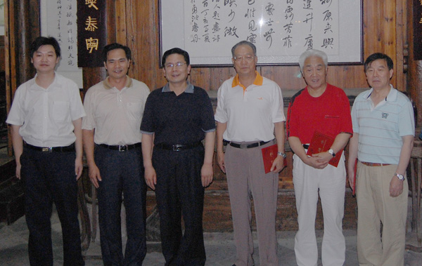 2008年7月26日,汪国真(左三)参加名人书画院组织的采风活动,在福建泰宁的尚书第参观并与名人书画院院长张道诚(右三)、副院长梁东(右二)、副院长赵立凡(右一)、秘书长汪碧刚(左一)、泰宁县委书记曾祥辉(左二)合影。