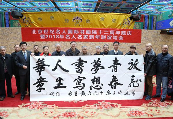 2018年1月6日,北京世纪名人国际书画院在中国政协文史馆举行名人书画院十二周年院庆暨2018名人名家新年联谊笔会。中国美协发来贺信。