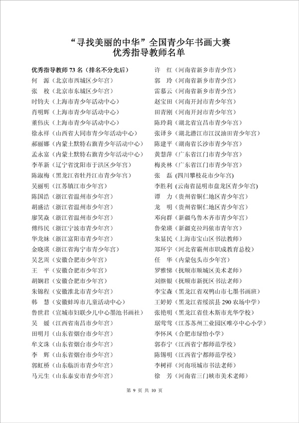 “寻找美丽的中华”全国青少年书画大比赛获奖名单公告