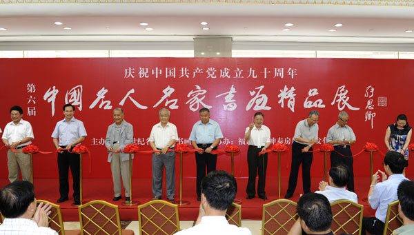 2011年7月17日至18日,为庆祝中国共产党成立90周年,由北京世纪名人国际书画院主办、福建三明坤泰房地产开发有限公司协办的第六届中国名人名家书画精品展在全国政协会议中心展出。全国人大常委会副委员长周铁农,中共中央政治局原委员、中央军委原副主席迟浩田,全国政协原副主席杨汝岱、李蒙题词祝贺。总后勤部原政委周坤仁上将,全国政协原副秘书长、北京世纪名人国际书画院院长张道诚,中直机关工委原副书记贾祥,九三学社中央顾问洪绂曾,中国文联原副主席 罗扬,农业部党组成员梁田庚,中国书协顾问李铎,福建省 泰宁县代县长郑剑波,福建三明坤泰房地产开发有限公司董事长蔡灵玲等出席开幕式;海军原副政委、北京世纪名人国际书画院副院长康成元中将,中共福建省三明市委常委曾祥辉在开幕式上致辞;王铁成、朱守道、赵立凡、张松、张铜彦等首都各界知名人士和书画爱好者300余人参加开幕式并参观展览。全国青联委员、中国书协会员、北京世纪名人国际书画院副院长兼秘书长汪碧刚主持开幕式。